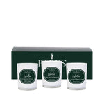 Trim wick to 5mm before each use. Allow wax to melt evenly across the surface during first burn (approximately 2-3 hours for 90g candles). Never burn for more than 4 hours at a time. Extinguish safely and allow to cool before relighting. The three 90g candles provide versatile fragrance options perfect for different moods, occasions, and spaces throughout your winter season.
